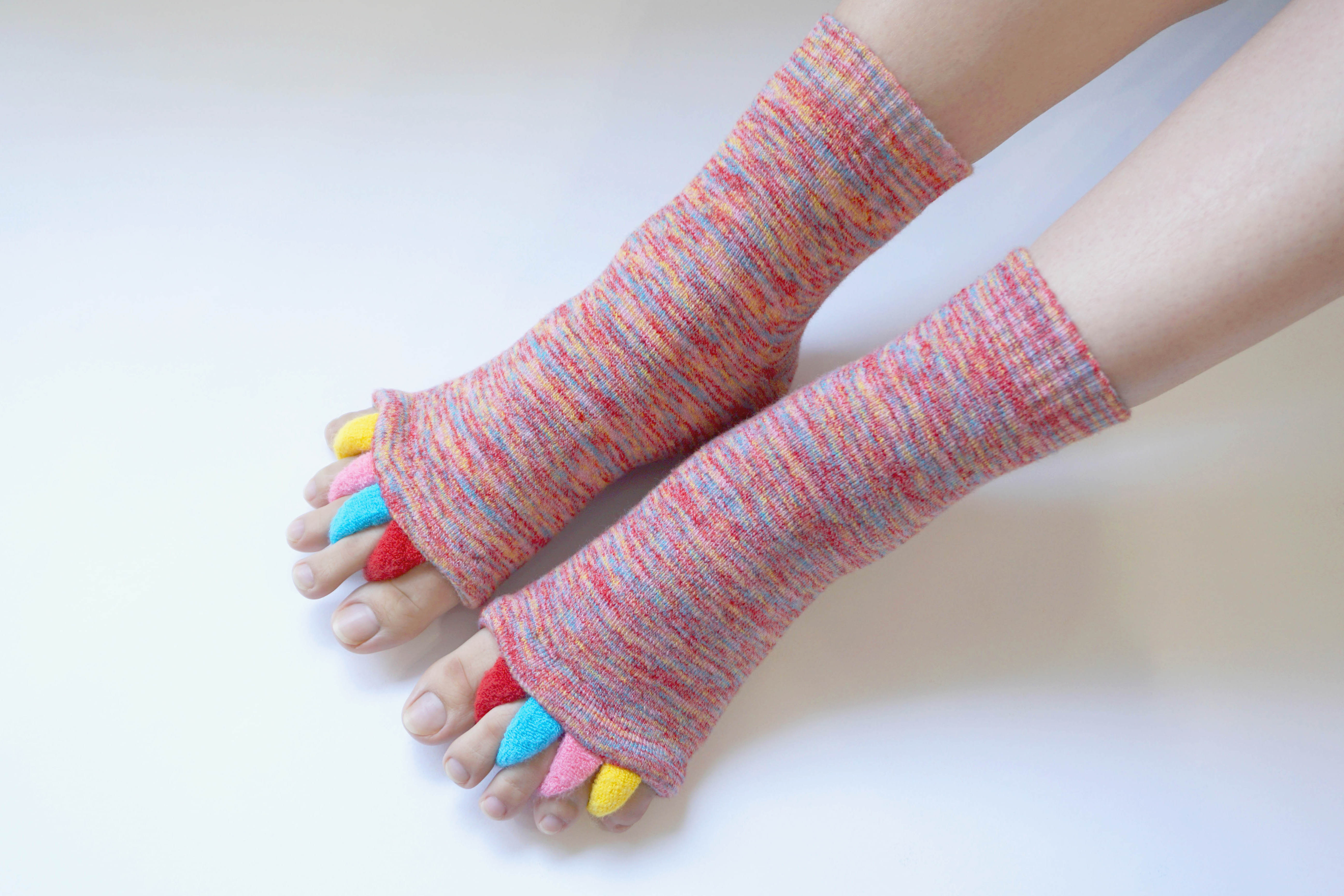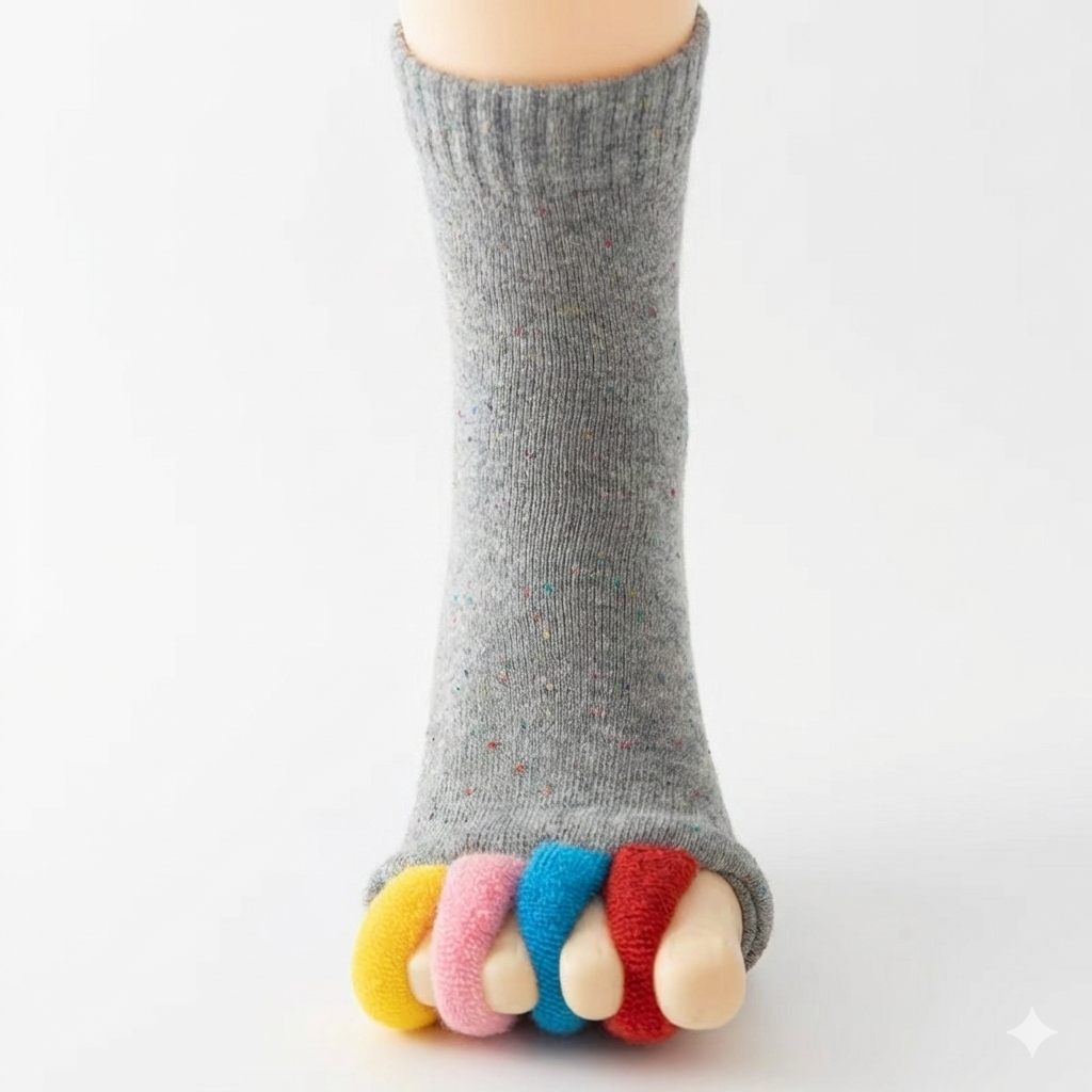 縮こまった足指を「ぐい~ん」と開放!履くだけで足が軽くなる『あしゆび開放ケアソックス』。あしゆび開放ケアソックスは、ギュッと縮こまりがちな足の指を、ぐいーんとやさしく開いてくれる靴下です。履くだけで、「あ、足が楽…」に!