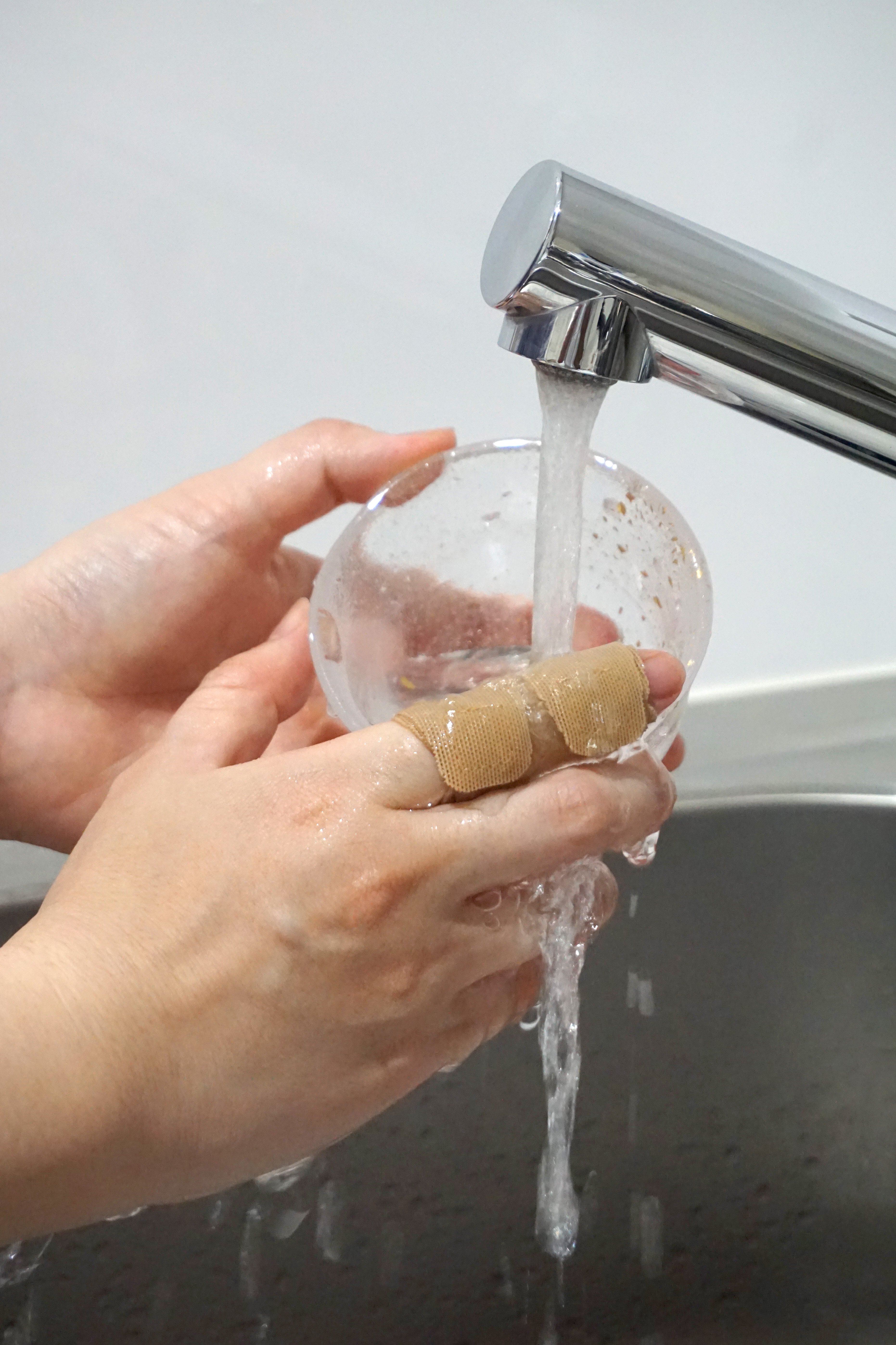メッシュ素材なので、濡れてもすぐ乾き、ムレにくい設計。洗い物、料理、洗濯。水を使う家事でも、つけたままでOKです。痛みが出やすい指関節をしっかり2本のテープで固定。 曲げると痛い。動かすとズキッとする。 そんな指の動きをやさしく抑え、関節への負担を軽くします。