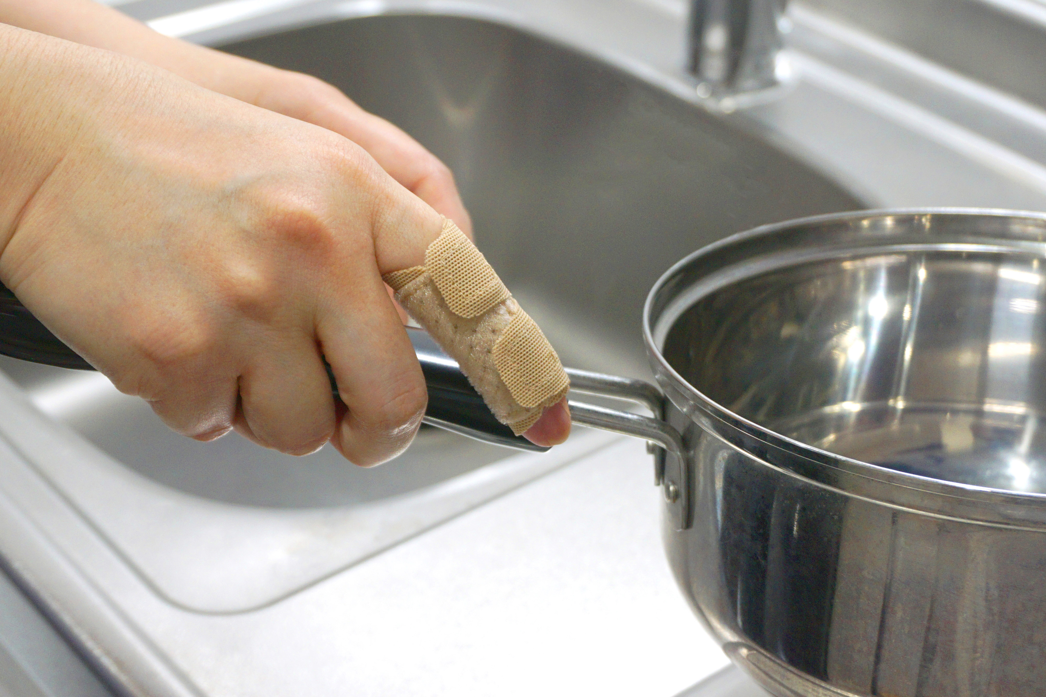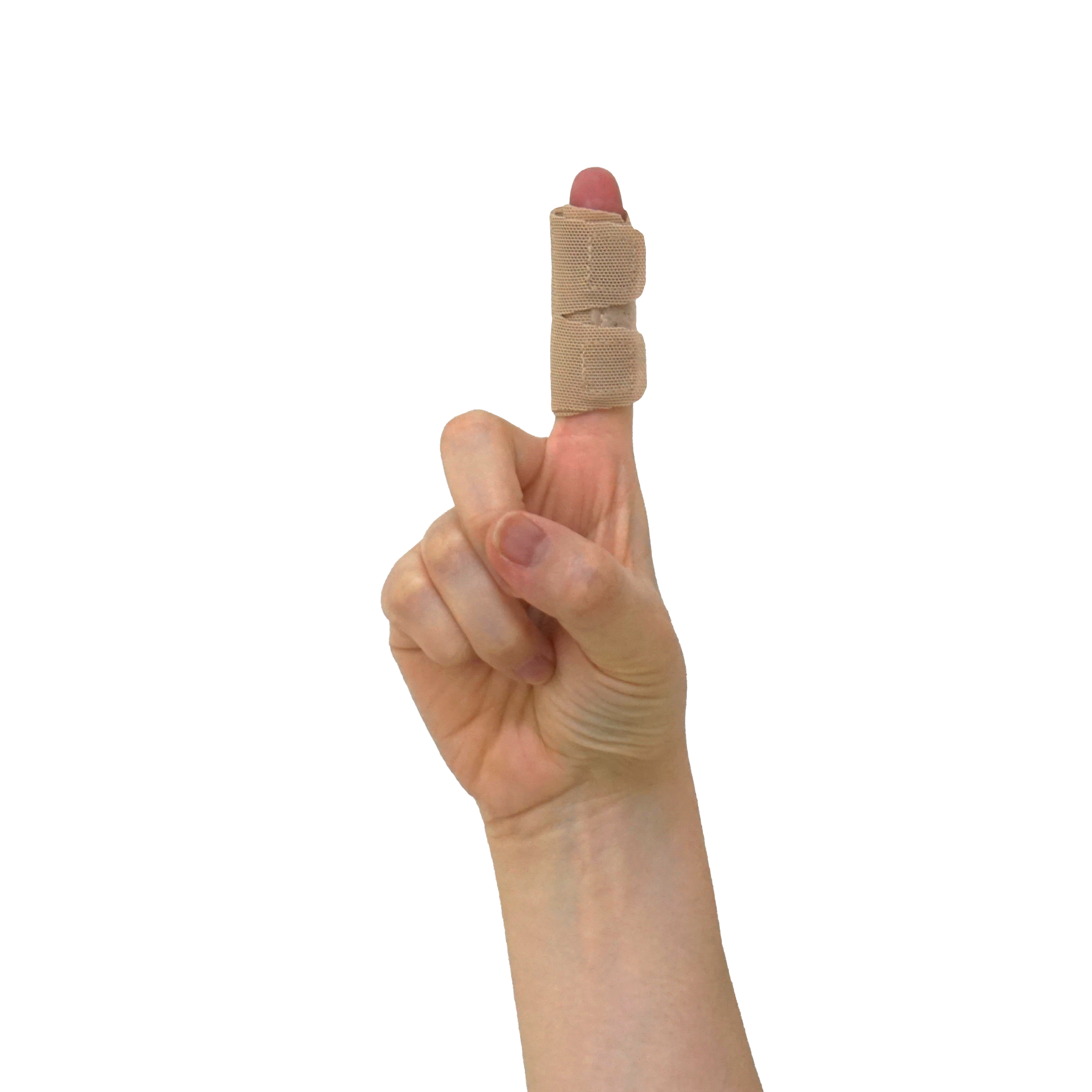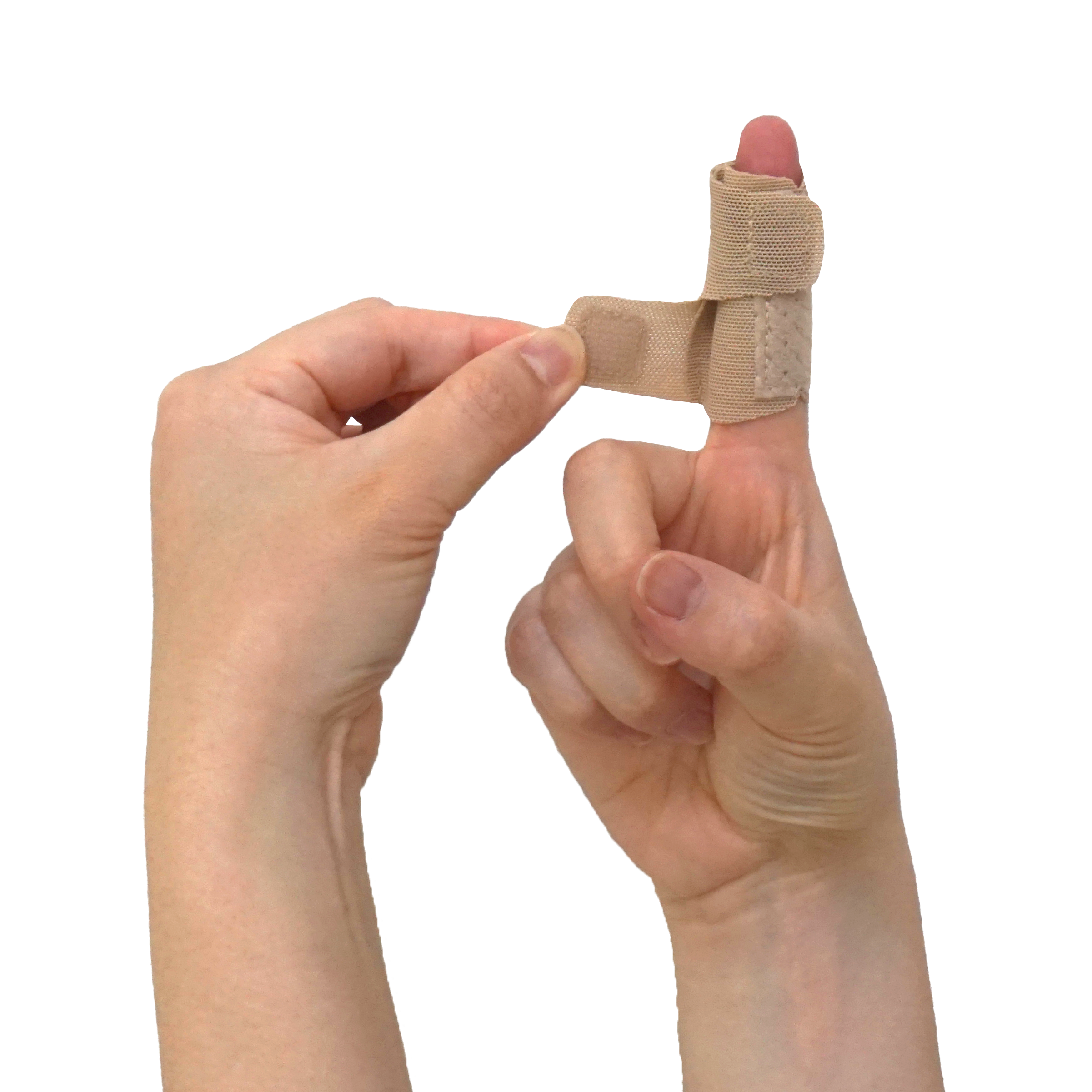 面ファスナーで留めるだけ。指の太さに合わせやすい いろいろな指に使える、片手でも簡単に装着できます。