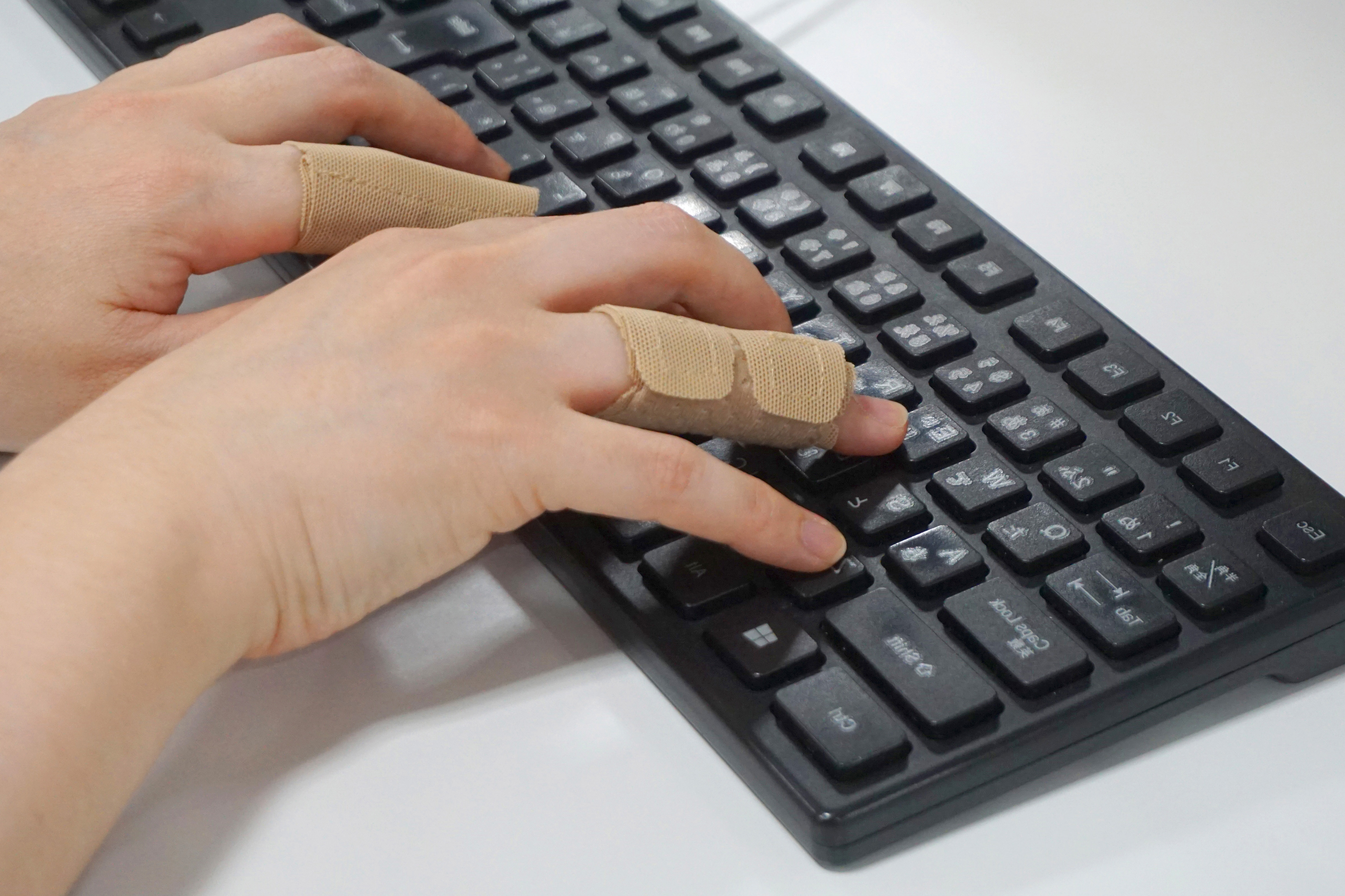 色は肌になじむベージュ。事務仕事、外出、人前での作業でも使いやすく、サポーター感が目立ちにくいのが特長です。